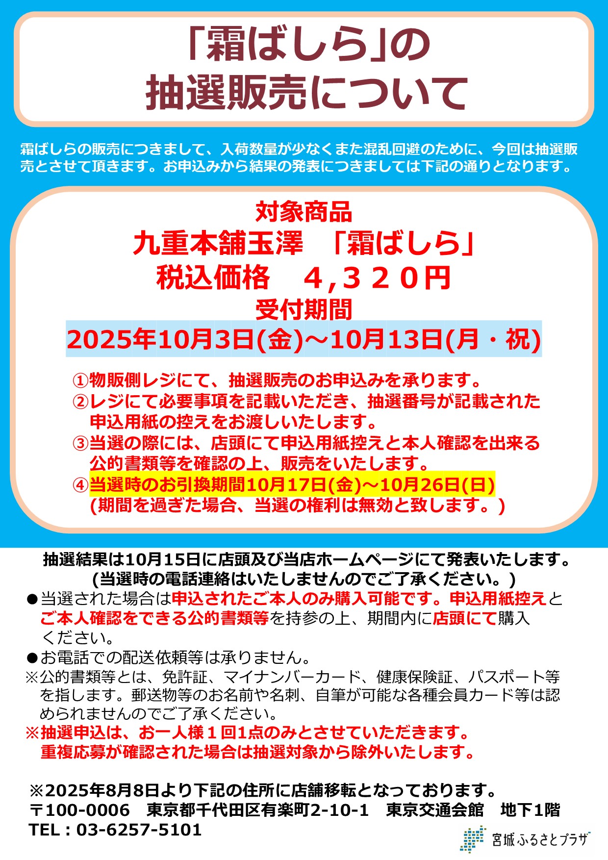 抽選申し込み受付期間 10月3日(金)~10月13日(月・祝)