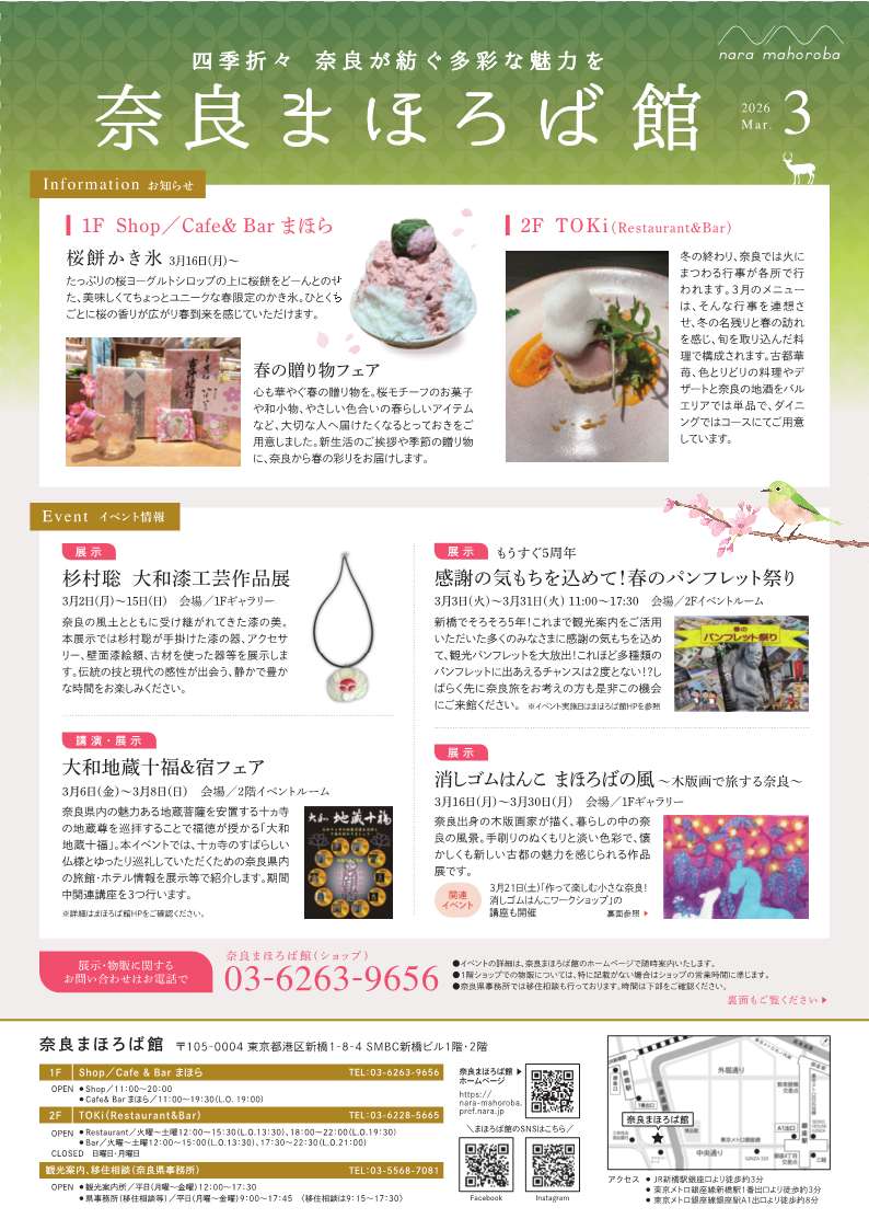 - 奈良まほろば館、イベントチラシ3月号を発行しました!