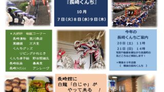 イベント情報 終了 2025『長崎くんち』PRまつり 毎年恒例となっております、『長崎くんち』PRイベントのご案内です! 今年も日本橋長崎館にて本番の長崎くんち(10/7~10/9)に先立ち、 少しでも早く首都圏在住の『長崎くんち』ファンに盛り上がっていただくため、 PRイベントを実施致しま... 開催日:2025/09/20〜2025/09/21 2025.09.19 イベント情報