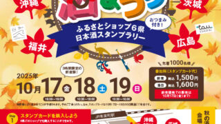 イベント情報 ぶらり銀座 秋の酒まつり、ふるさとショップ6県の日本酒スタンプラリー 開催日 2025年10月17日(金)16:00~19:00 10月18日(土)10:30~18:00 10月19日(日)10:30~16:00 参加料 スタンプカード代(6店合計で先着1,000枚限り) [前売]1,500円(税込)※前売価... 開催日:2025/10/17〜2025/10/19 2025.09.26 イベント情報スタンプラリー